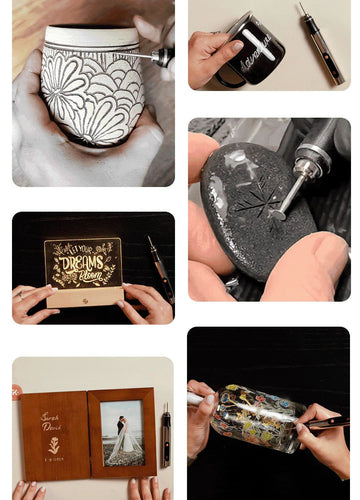 The Powerful Electric Mini Carving Tool works on wood, metal, glass, ceramics, plastic, and more, making it perfect for various DIY and professional projects.